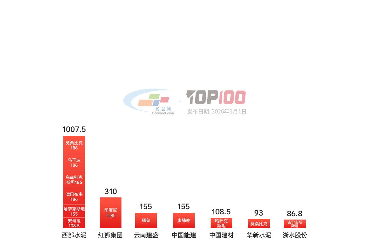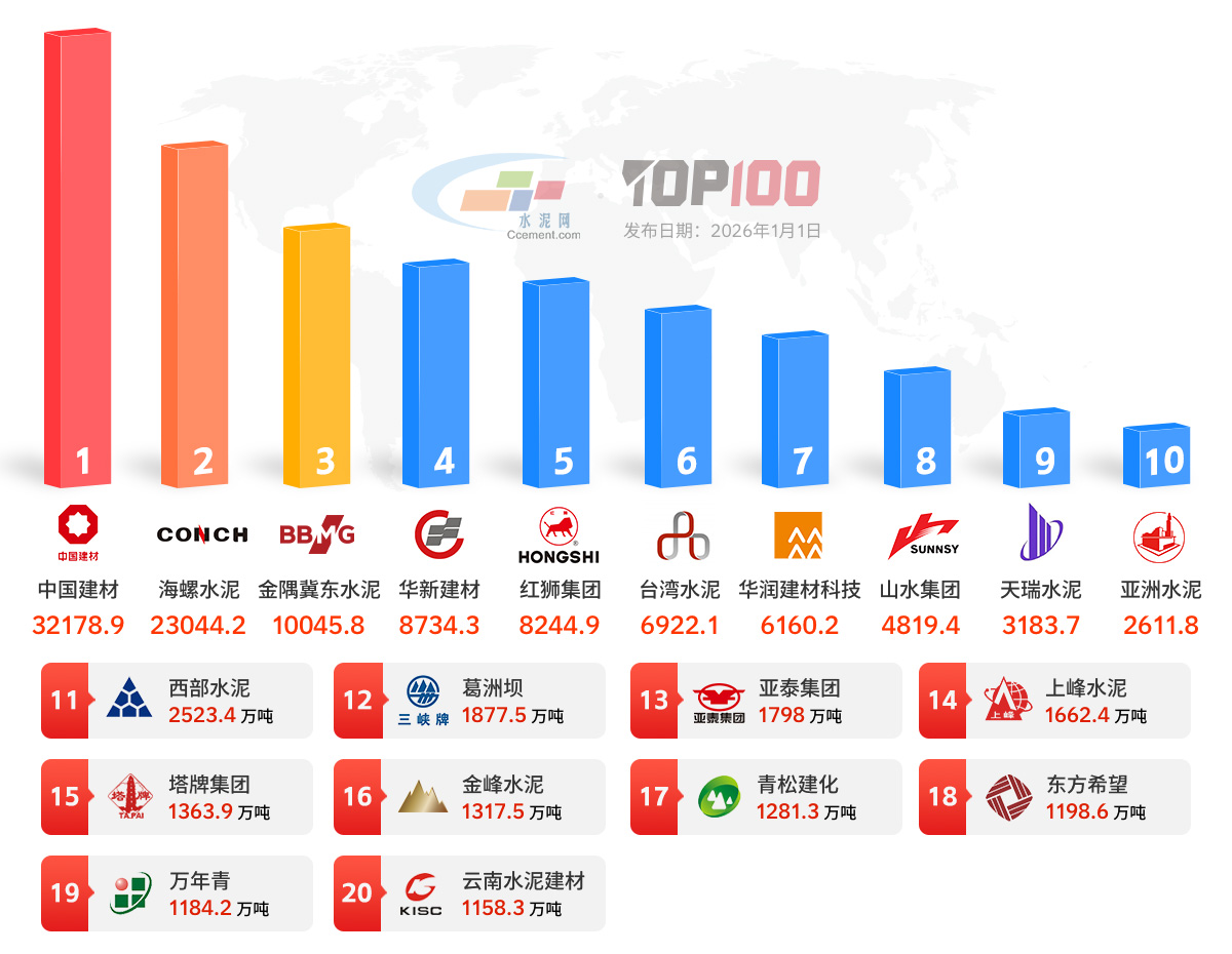 2025中华沙浆企业各国熟料的生产能力TOP20 (组织:十万吨/年)