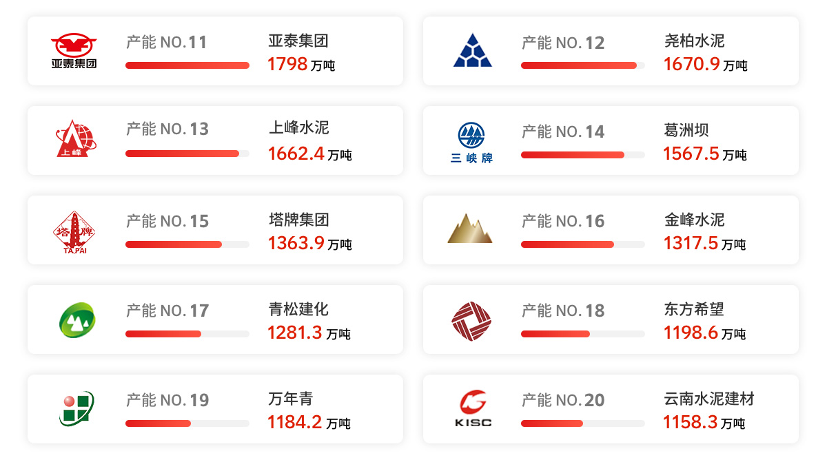 水泥产能排行榜