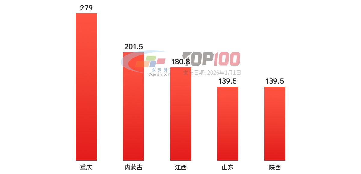 201八年混泥土熟料产值前五强榜